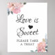Kärlek är Sweet Calligraphy Script Dusty Rosa Blommigt Dessert Pub Sign Poster