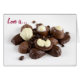 Kärlek är Sweet med chokladgodis på ett hälsningskort