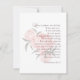 Samordna din brölloppssvit med detta eleganta svarskort med de tidlösa orden från 1 Korintierbrevet 13:4–7 och mjuka akvarellpeonior. Utformat för att komplettera din trofulla firande, erbjuder detta kort gästerna ett vackert och genomtänkt sätt att svara. Med utrymme för namn, närvaro och måltidsval (om det behövs), kombinerar det praktiskhet med syfte – samtidigt som det håller ditt bröllopps tema konsekvent och meningsfullt.