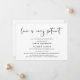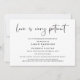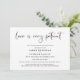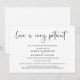 Minimal modern svart-vit bröllopsförsening och ändring av planer meddelande. "kärlek är mycket tålmodig" är skrivet i ett chic stilfullt manus och du kan enkelt anpassa om bröllopsdatum har skjutits upp eller om några andra detaljer har ändrats.