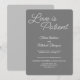 Trendig, elegant, grå bröllopsinbjudan. Denna design har en modern typsnitt för orden "Kärlek är tålig" typografi. Anpassa detta bröllopsmeddelande som dubblar som en bröllopsinbjudan med brudens och brudgummens namn och all information om vigsel och bröllop. Denna eleganta layout är enkel att anpassa.