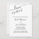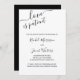 Bröllopsförseningsmeddelandekort med minimalistisk svart-vit färgpalett. "Love is Patient" tillsammans med brudens och brudgummens namn är handskrivna med elegant skrivstil. Mallen är inställd för att du ska kunna anpassa ditt bröllopsuppdateringsmeddelande. Exempeltexten lyder "på grund av de senaste händelserna har bröllopet [era namn] skjutits upp. Vi meddelar er så snart vi har fastställt ett nytt datum. Det var ett svårt beslut och vi tackar er för er förståelse" - som du kan behålla eller redigera som du önskar.