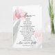 Inspirerande citat skrift bröllop, förlovningskort avbildar en delikat skissad blomstermålning i modern vattenfärgdesign med enkla rosa vår tulpaner med gröna och grå blad. Den innehåller bibelverser 1 Korintierbrevet 13:4-8, "Kärlek är tålmodig, kärlek är god. Den är inte avundsjuk, den skryter inte, den är inte uppblåst. Den är inte oartig, den är inte självisk, den blir inte lätt arg, den håller inte räkning med det onda. Kärlek gläder sig inte åt det onda, utan gläder sig åt sanningen. Den skyddar allt, den tror allt, den hoppas allt, den uthärdar allt. Kärleken misslyckas aldrig." Hälsningen kan anpassas och användas för många tillfällen eller raderas