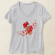 Den här ljusa grått v-nacke T-tröjan har en charmerande utformning för par, med en nalle omgiven av röda hjärtan och "KÄRLEK" text på framsidan, och en oändlig symbol som förbinder röd ros på baksidan och symboliserar en evig kärlek och anslutning. Det är perfekt för avslappnad bära eller som en tankfull gåva till en älskad.