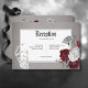Avslöja förtrollningen av evig kärlek med vår spökliga bröllopsmottagningskort. Omfamna den andra världens förföriska charm hos denna blodröda och spöklikta vita akvarellblommiga ram, som vaggas i det beniga greppet av skelett-händer som viskar en saga om tidlös romantik. Den eteriska bakgrunden, berörd av en spöklik oskärpa, sätter scenen för en fest som överskrider det vanliga. När du vecklar ut inbjudan, känns en rysning av upphetsning när två överlappande benhänder griper om ett blodrött, stänkt hjärta - en symbol för kärlek som trotsar även riken bortom. Det är ett äktenskap mellan det mystiska och det romantiska, som lockar dig till en kusligt v