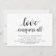 Ändra datum kort. Detta är bröllops inbjudan Återanmäld (uppskjuten / uppskjutande) kort (Kärlek besegrar allt), i den moderna minimala enkla rena designen tematisk, Svart teckensnitt.