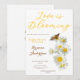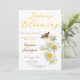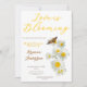 Kärlek blommar vild blomster daisy bröllopsfest design med mjuka gula prästkragar, en delikat fjäril och elegant script typografi. Perfekt för en vår- eller sommbrud som älskar ett blomsterträdgårdstema. Denna romantiska vilda prästkragestil för bröllopsfest skapar en fräsch, glad festatmosfär.