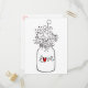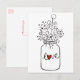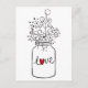 Handskrivna kärlekslappar är ett bra sätt att lysa upp någons dag! Detta roliga vykort har en handritad murad glasburk med Kärlek tryckt i en röd hjärtskrift med vilda blommor.