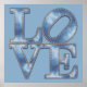 Det vackra glam KÄRLEK poster ord KÄRLEK i ett stiliserat tredimensionellt format. Brev är en blå nyans där varje brev är försedd med ett stort antal små, blanka, cirkulära inslag som lyser som stenar och kristaller. Brev är arrangerat i en kvadratisk form som utesluter lyx och elegans.