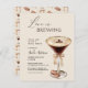 Fira den blivande bruden med chicen "Kärlek is Brewing" espresso martini inbjudningskort för möhippan. Den här inbjudan har en lekfull men ändå elegant-design och anger tonen för en sofistikerad samling fylld med roligt och delikata cocktails. Snyggten espresso martini-temat, kompletterat med modern typografi, skapar en trendig, upphetsad vibe-perfekt för ett livligt firande. Idealisk för cocktail-kärleksbrider, utlovar den här inbjudan en minnesvärd dusch, som blandar kärlek, vänskap och en aning elegans med en uppfriskande vrid.
