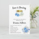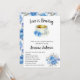 Blåa blommor Inbjudningskort för möhippan. Om du vill göra ytterligare anpassningar (ändra annan ordalydelse, font färg, font stil) klickar du på personalize, rulla down (anpassa) och klickar på länken "click to custom more" (klicka på länken "click to custom more"). ** Kontrollera samlingen för alla matchande utformningar.