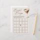 En chic, med vrister på en möhippa klassisk. Denna espresso martini-inspirerade Möhippa Bingo-match är designad för värdar som uppskattar obeveklig elegans och kurerade upplevelser. Med sofistikerad manustypografi och en handmålad cocktailillustration blandas underhållning sömlöst med en förhöjd estetik. Perfekt för möhippor, förlovningsfester eller sofistikerade sammankomster, den här behållan gäster som deltog i firandet av den blivande briden i stil. Vare sig du spelar tillsammans med en champagneskast, en intim brunch eller en lyxcocktail, garanterar det en livlig men raffinerad upplevelse. Tittar du en fullständigt samordnad evenemangssvit? Matchande inbjudningar, skyltar och papper är tillgängliga för ett sammanhängande, polerat firande. Om du vill ha paletter eller redigeringar av personligen i anpassningsbar kan du skräddarsy den här designen så att den passar din syn. Copyright Anastasia Surridge, alla höger reserverade.