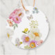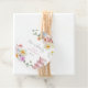 "Kärlek brygger" i elegant skrivstil med evenemangets namn och datum omgivet av akvarell vilda blommor och snygga rosa tekoppar. Samordnad samling finns i Adore Paper Co. Zazzle Shop.