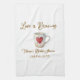 Kärlek brygger vit kaffemugg hjärta bröllopsfest kökshandduk