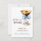 Fira den blivande bruden med detta eleganta kaffetematiska bröllopsfest-kort. Med en akvarell- espressomartiniglas, ett delikat blått band och modern typografi sätter denna design tonen för en stilfull och mysig fest. Perfekt för kaffeförälskare, brunch-firande och höst- eller vinterbröllop. Anpassa med dina festdetaljer för att göra det unikt!