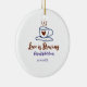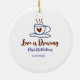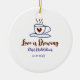 Kärlek bryggs brun blå bröllopsdusch lägg till nam julgransprydnad keramik