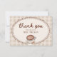 Fira bruden med detta "Love is Brewing Gingham Coffee Bridal Shower Thank You Card". Med en akvarell latte krönt med hjärtformad skumkonst, kaffebönor och en vintage-ram med snedd kant över en varm beige-rutig bakgrund, ger denna mysiga café-inspirerade design en rustik charm till din bröllopsfest-stationär. Perfekt för att uttrycka tacksamhet till gästerna, passar detta redigerbara tackkort vackert med matchande "Love is Brewing"-inbjudningar och festdekorationer.