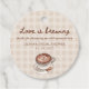 Tillsätt en varm och charmig touch till din fest med dessa "Love is Brewing Gingham" kaffebryllupsgavor-etiketter. Med en akvarell latte med hjärtformad foam, kaffebönor och en mjuk beige gingham-bakgrund är denna mysiga caféinspirerade design perfekt för ett rustikt eller höstinspirerat bröllopskaffe. Dessa redigerbara etiketterna passar vackert ihop med matchande "Love is Brewing" inbjudningar, dekorationer och brevpapper från kollektionen.
