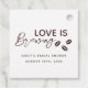 Lägg till den perfekta avslutande detaljen till era bröllopsdusch-favoriter med dessa anpassningsbara etiketter från samlingen ”Kärlek bryggs”. Med texten ”Kärlek bryggs” med kaffebönsaccent, plus brudens namn och evenemangsdatum, är dessa etiketter perfekta för att knytas på kaffesäckar, honungsburkar, mini-flaskor, ljus eller andra duschfavoriter.