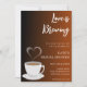 Svarta och terracotta ombre kärlek brinner inbjudningskort för möhippan med kaffe kopp och hjärtrök. Anpassa den med din händelseinformation och ändra färg.