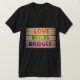 Den här slitstarka t-shirt-skjortan innehåller det otrevliga meddelandet "Kärlek Bygger bryggor" i ett fet teckensnitt med flera färgader. Konstruktionen är visuellt slående och förmedlar ett positivt och upplyftande budskap om kärlek och anslutningen. Många färg skapar ett dynamiskt och öga-infångande estetiskt, och skapar det perfekt för att ni uttrycker er tro på kärlek transformativa karaktär.