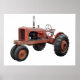 Vintage rostigt röd traktor isolerad med vit bakgrund.