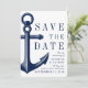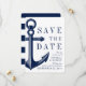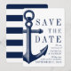 Ett unikt sätt att spara datumkorten som är skräddarsydda för ditt framtida bröllop med ett unikt nautiska stil. Inbjudningskortets framsida har ett fet ankare för vintage som kompletterar ett nautiskt stil. På motsatt sida är mörk marin och vit rand för att slutföra utseendet. Alla inslag är olåsta, så ha roligt att skapa och skapar dem själva.