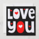 Quirky modern typografi för dina Valentine med stort trendig som skriver Kärlek You In White och rött med hjärtmotiv i svart bakgrund. På baksidan kan du anpassa dig till ditt eget hälsning. Färgen i bakgrunden kan ändras till ett annat färg om du vill det via alternativet Klicka för att anpassa ytterligare.