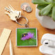 Den här nyckelringen ger en underbar gåva till den speciella personen i ditt liv. Den har en söt humlebee som samlar nektar från en lila blommar i en Connecticut-skugga.