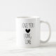 Typografi av trendig och ljus mugg med ord "kärlek you long time" i en svart text på vit bakgrund och ett litet svart hjärta i mitten.