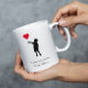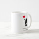 Överraska mamma med detta moderna och snyggt kaffe mugg! Med en silhuett av en pojke som håller en röd hjärtballong, är det ett hjärtligt sätt att säga "I kärlek du, mamma". Anpassa den genom att lägga till ditt namn för en personlig. Perfekt för minimalistiskt mammor som uppskattar tankvärda gester. Om du har problem med den här designen kontaktar du mig genom meddelandeknappen för zazzle-arkiv och är lycklig för att hjälpa dig.