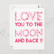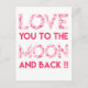 NewParkLane - Cute, romantiskt vykort, citat: "Kärlek du till måne och tillbaka!!!" i fet typografi i shock rosa och med mönster med olika skuggor och storlekar rosa hjärtan och ... Söt design för Valentindagen eller något annat romantiskt tillfälle. Checka ut samlingen för matchande objekt.