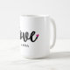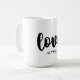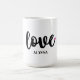 Aestesiskt mugg med texten "kärlek" i svart och vitt kalligrafteckensnitt i contemporary och med ett litet rosa hjärta. Anpassa den så att den blir speciell för dina kära i extra. Underbar som Valentindagspresent, födelsedagspresent, farewell-gåva osv.