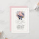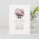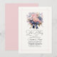 Fira med stil med denna eleganta inbjudan till övningsmiddag med en fantastisk bukett av pastellrosa rosor, hortensior och liljor prydd med en sofistikerad marinblå rosett. Den känsliga rosa ramen och graciösa skrivstilens teckensnitt ger en tidlös touch, vilket gör den perfekt för formella eller romantiska bröllopsfiranden. Helt anpassningsbar för att passa dina evenemangsuppgifter.