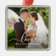 Kärlek Elegant Script Bröllop Photo Mr. och Mrs. Julgransprydnad Metall