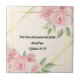 Den här keramiska plattan har en elegant och en dekorativ design. Det har ett mjukt blommönster med delikat rosa ros och lush grönt löv som fäster den översta högerna och grund lämnat hörn, vilket ger en aning värme och charm. Guld formar ett sofistikerat fyrkantigt ram runt mitttexten, ge plattan ett konstnärligt och förfinat utseende. Den text som står i centrum lyder: "Vi kärlek eftersom han älskade oss för första gången" 1 John 4:19 Denna vers budskap förmedlar ett budskap om tro och kärlek, skapar plattan inte bara ett vackert dekorativt biet utan också en meningsfull påminnelse om andlig hängivenhet. Kombinationen av blommigt inslag, guld-accenter och hjärtfiltskript skapar en harmonisk design som passar perfekt för visning i hemmet eller i religiösan.