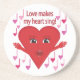 Upptäck en rolig och livfull design med ett sångande hjärta omgivet av musiknoter, var och en prydd med hjärtan istället för traditionella ovaler. Överst fångar den inspirerande frasen "Kärlek får mitt hjärta att sjunga!" essensen av musik och kärlek i en harmonisk enhet. Perfekt för musikälskare, romantiska själar och alla som tror på kärlekens kraft att lyfta sinnet. Denna design förenar passion och melodi på ett visuellt fantastiskt sätt, idealisk för presenter, heminredning eller kläder som firar kärlek och musik.