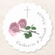 Design innehåller bilden av ett silver kor som visas ovanför två sammanflätade rosa ros. Namnen av brud och triom tillsammans med datumet bröllop är omringat runt bilden i ett elegant, silver-färgad-teckensnitt. Designad att samordna med "Kärlek finns i Bloom Bröllop Suite".