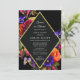 Elegant och djärv modern blommigt innehåller lila, orange och burgiga röda blommor i svart bakgrund. Detta djärva botaniska omger ett runt guld ram. Kärlek är i möhippan Bloom och informationen är i ljusvitt. Baksidan av inbjudan innehåller KÄRLEK skriven i dekorativt brev och förskönad med blommor. Inbjudningskort för möhippan är en del av Midnight Möhippa Collection. Skicka gärna ett meddelande om du behöver hjälp med att hitta matchande objekt.