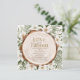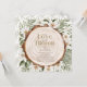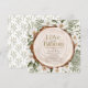 Eleganten "kärlek är i blomning" inbjudningskort för möhippan har en trästump/segment omgiven av vita blommor och grönt löv. Den omvända sidan har en vit bakgrund med blommönster. Anpassa den efter dina behov. Du hittar matchande produkter i min butik.
