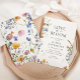 Fira att bruden som ska vara med Kärlek är i Bloom Wildbloms Meadow Inbjudningskort för möhippan. Den här charmerande designen innehåller känsliga vildblommor med vattenfärg i mjuka lilak, persikor och guldfärgade toner, som ordnas i ett vismiskt, ängsinspirerat ram. Elegantens serif- och skripttypgrafi lägger till en tidslassig beröring, perfekt för en drömmande vår eller sommartid-möhippa för blommigt. Anpassa med din händelseinformation och ställ in tonen för ett romantiskt, blommande firande!