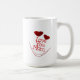 En hjärteformad mugg-design med budskapet "Kärlek You Mamma" omgiven av två vackra hjärtformer, perfekt för att visa mamma hur mycket du bryr dig.