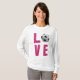 Kärlek fotboll ord design med varma rosa falska glittrande bokstäver och "o" ersätts med en fotboll.