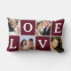 Modern ''Kärlek'' skriptfotolumbar kudde. Utforma funktioner för 4 av dina foton, kärlek-skript på en röd bakgrund. Perfekt som gåva till Alla hjärtans dag, årsdag osv.