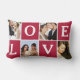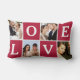 Modern ''Kärlek'' skriptfotolumbar kudde. Utforma funktioner för 4 av dina foton, kärlek-skript på en röd bakgrund. Perfekt som gåva till Alla hjärtans dag, årsdag osv.