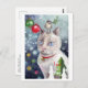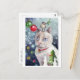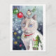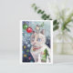 Watercolor och blandade medier av Emily Hayes av en katt och fågel som firar julens innebörd.