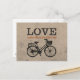 Vintage-stil-kort med typografiskt talesätt: "Kärlek gör livet till en vacker rid." Utformningen har ett gammalt skolcyklar. Perfekt för cyklister, cykelentusiaster, nygifta, Alla hjärtans dag eller när du vill skicka en kärlek-not.