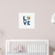 Skapa en bestående minnesgåva från er bröllopsdag att visa på väggen istället för en gästbok. Denna affisch har ett modernt industriellt uttryck med en djärv grafik i en distressad stil där typografin i marinblått stavas ut det engelska ordet för kärlek, där er foton är i hjärtform och utgör bokstaven "O". Brudens och brudgummens namn samt bröllopsdatum är i en skrivmaskinsfont i marinblått. Längs kanterna på designen finns gott om utrymme för era gäster att signera affischen med sina namn.