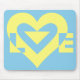 En grafisk logotyp, anpassningsbar. KÄRLEK i gult om blått.