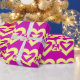 En grafisk logotyp, anpassningsbar. KÄRLEK i gult om lila.